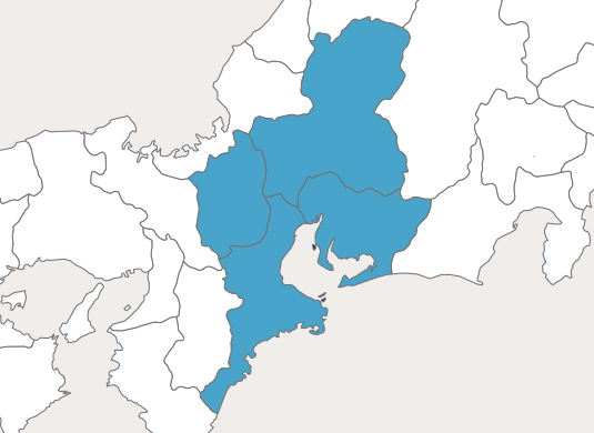 対応エリアは岐阜県、愛知県、三重県の東海三県に加え滋賀県です。